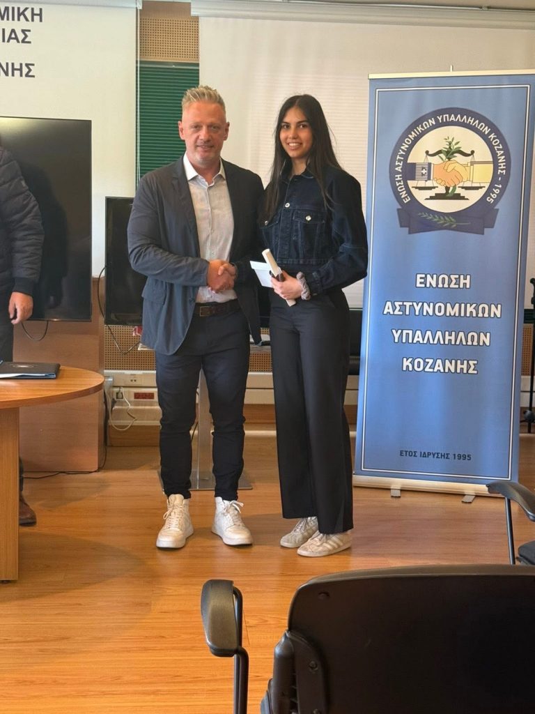 Σημερα Μεγάλη Πέμπτη 17/04/5 στην αίθουσα πολλαπλών χρήσεων της ΔΑ Κοζάνης,η Ένωση Αστυνομικών Υπαλλήλων Κοζάνης όπως κάθε χρόνο τίμησε τα τέκνα των συναδέλφων Αστυνομικών που κατάφεραν να εισαχθούν στα Ανώτερα Εκπαιδευτικά ιδρύματα της χώρας. Στην φετινή τελετή συμμετείχε και η Τοπική Διοίκηση του ΙΡΑ Κοζάνης όπου και αυτός με την σειρά του βράβευσε τα τέκνα των συναδέλφων. Συγχαρητήρια σε όλα τα παιδιά που καθημερινά κάνουν τους γονείς τους και εμάς περήφανους, ευχόμαστε τα όνειρα σας να πραγματοποιηθούν, είστε το μέλλον της χωρας μας!